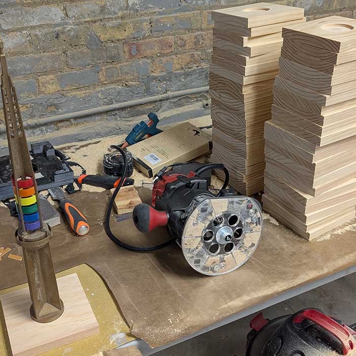 The Legacy Project, a Chicago non-profit that created the 25 foot tall pillars on the sidewalks of the Lakeview neighborhood, wanted mini versions of their pillars to use as table centerpieces for their fundraising gala. We started with very rough blueprints and created a 3D model. Next we iterated through prototypes to come up with a plan for how to assemble the pieces and streamline the production process. And finally, we printed, painted, and assembled 40 pillars, each 18" tall.